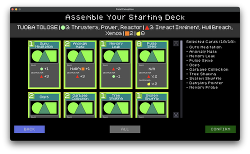 Fatal Exception is a deckbuilding roguelike where winning requires orchestrating your own destruction.